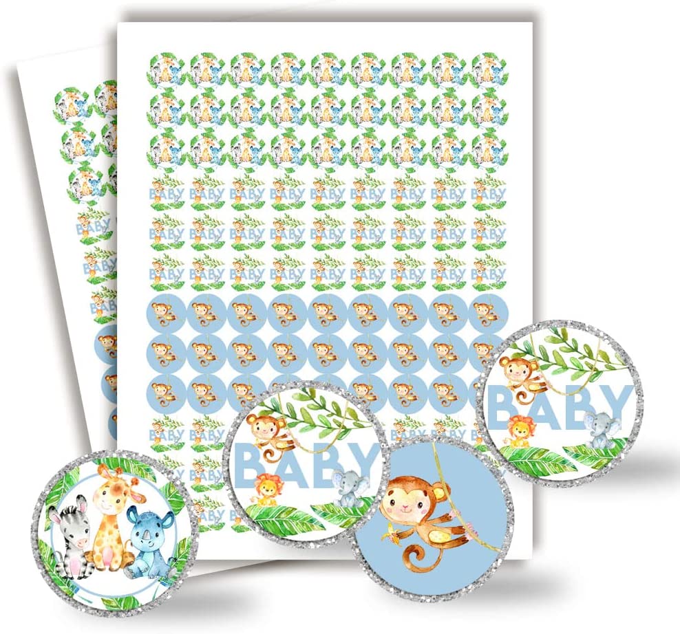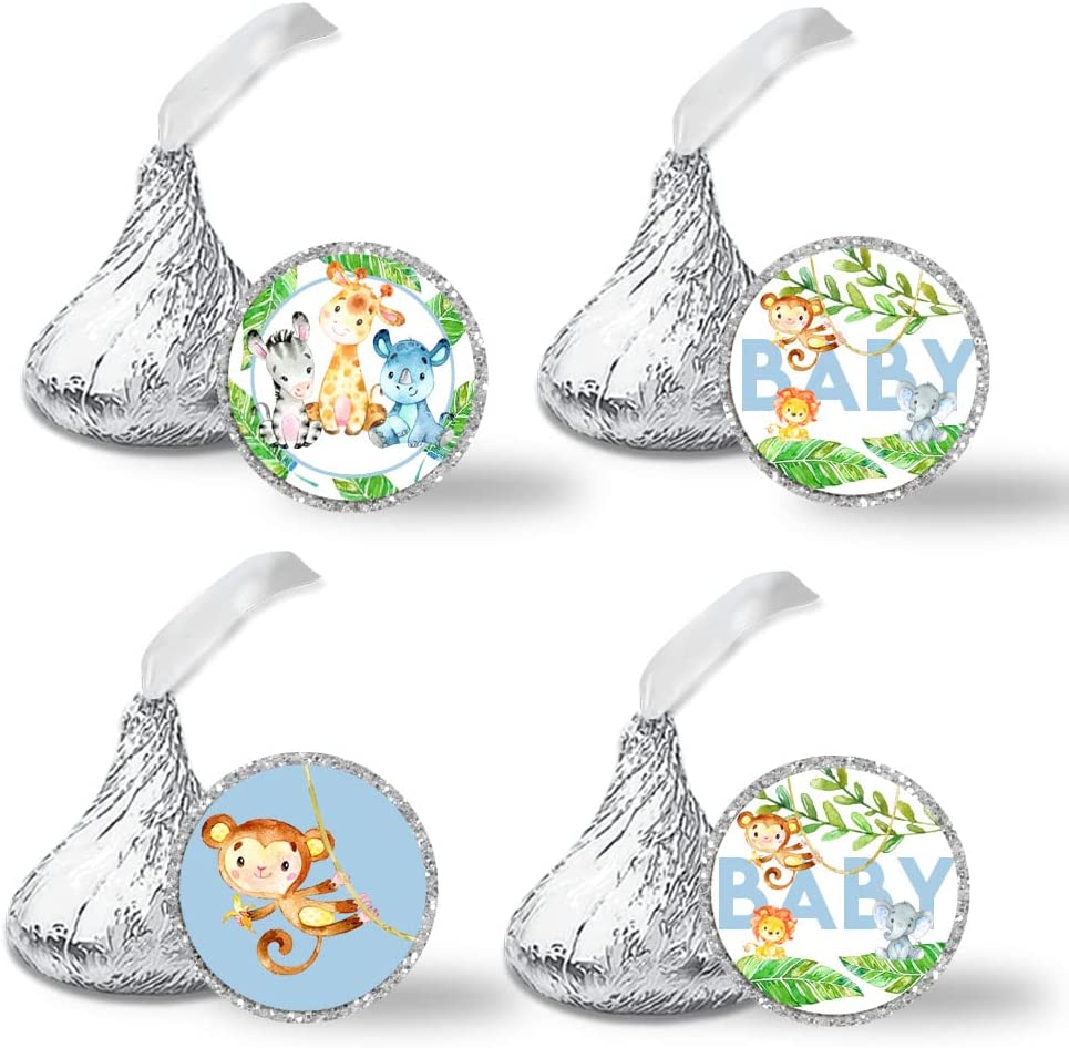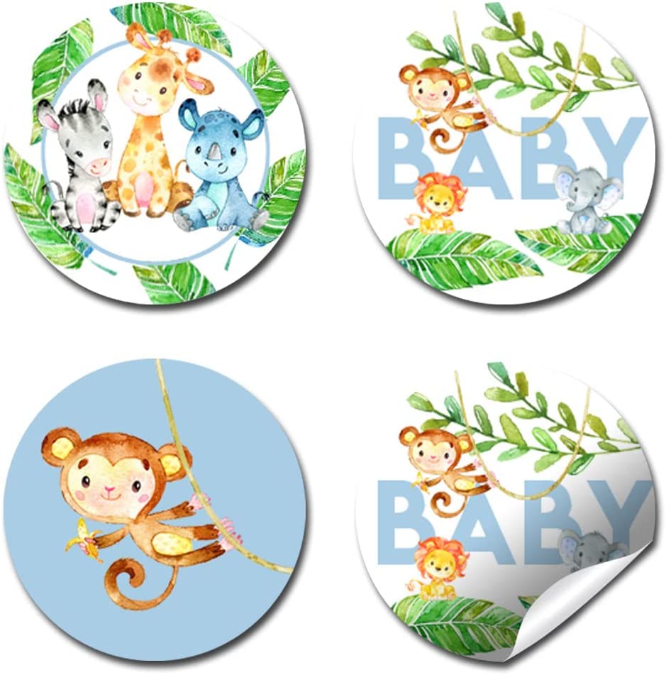 Watercolor Jungle Animals Boy Baby Shower Kiss Stickers