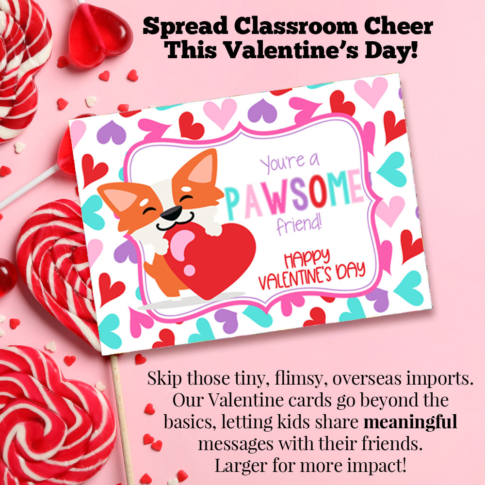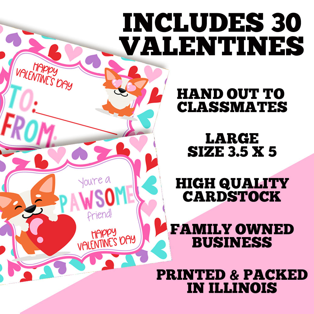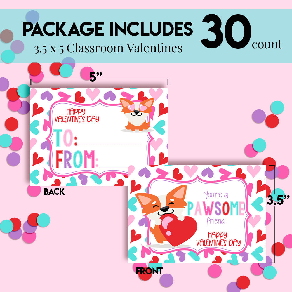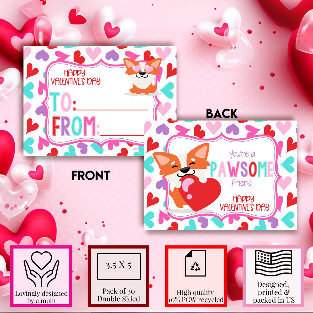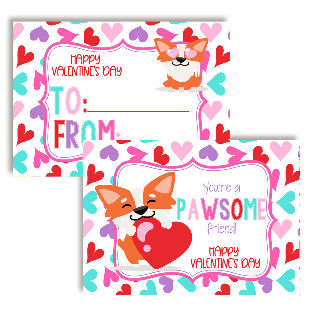 Make your child's Valentine's Day extra special this year! These adorable Valentine cards feature a silly pun and a cute corgi puppy.