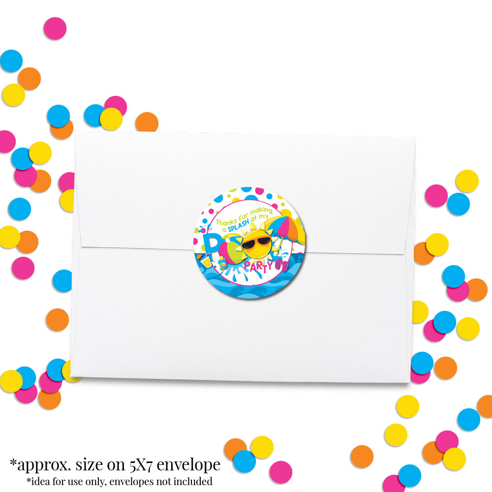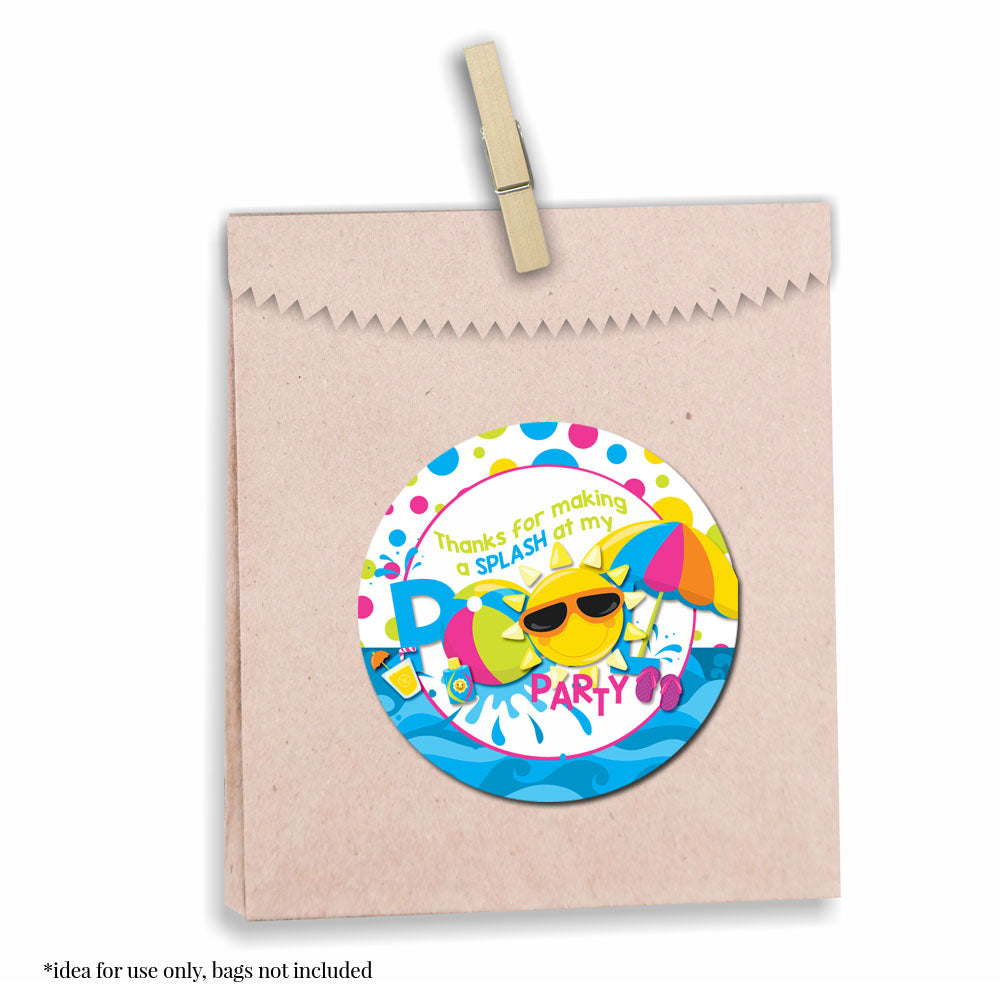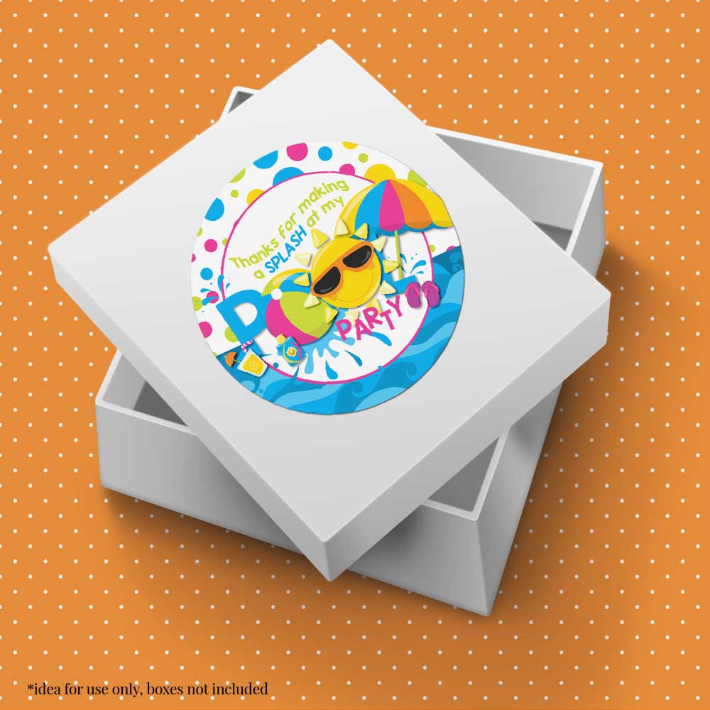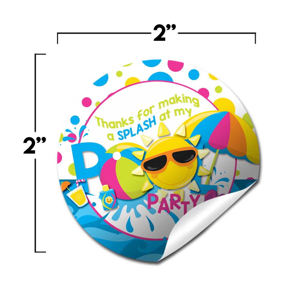Sunshine Pool Birthday Party Favor Stickers